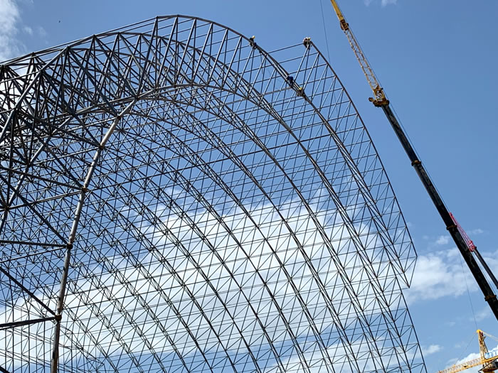 (2)网架加工前应对现场尺寸进行复测,确认无误后方可进行加工、安装;网架制作、运输、安装应遵守《空间网格结构技术规程》JGJ7-2010、《钢网架常德螺栓球节点》JG/T 10-2009、《钢网架常德螺栓球节点用高强度螺栓》 GB/T 16939-2016、《常德钢结构常德工程常德施工规范》 GB50755-2012、《常德钢结构常德工程施工质量验收标准》 GB50205-2020。